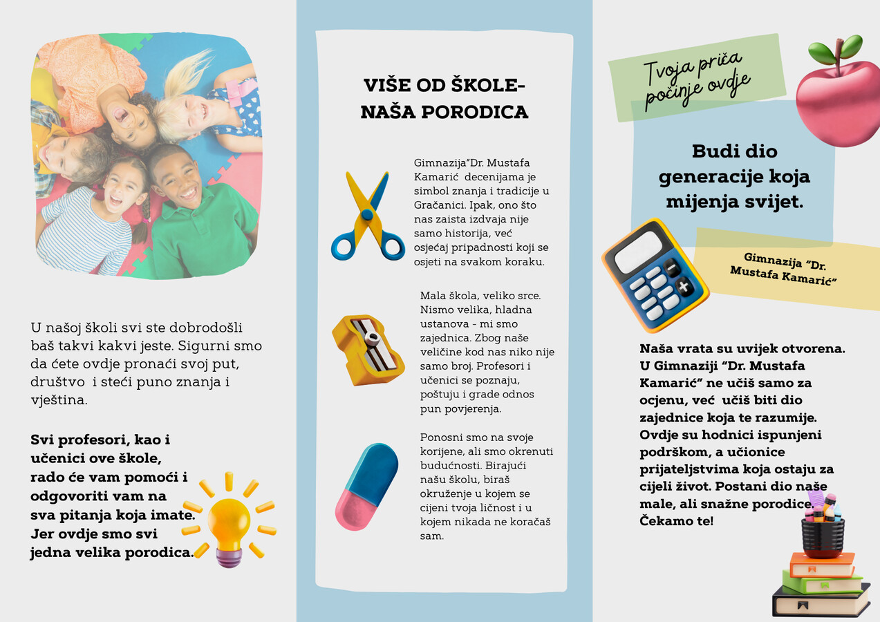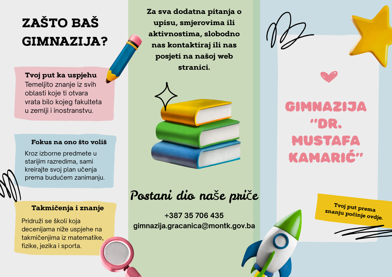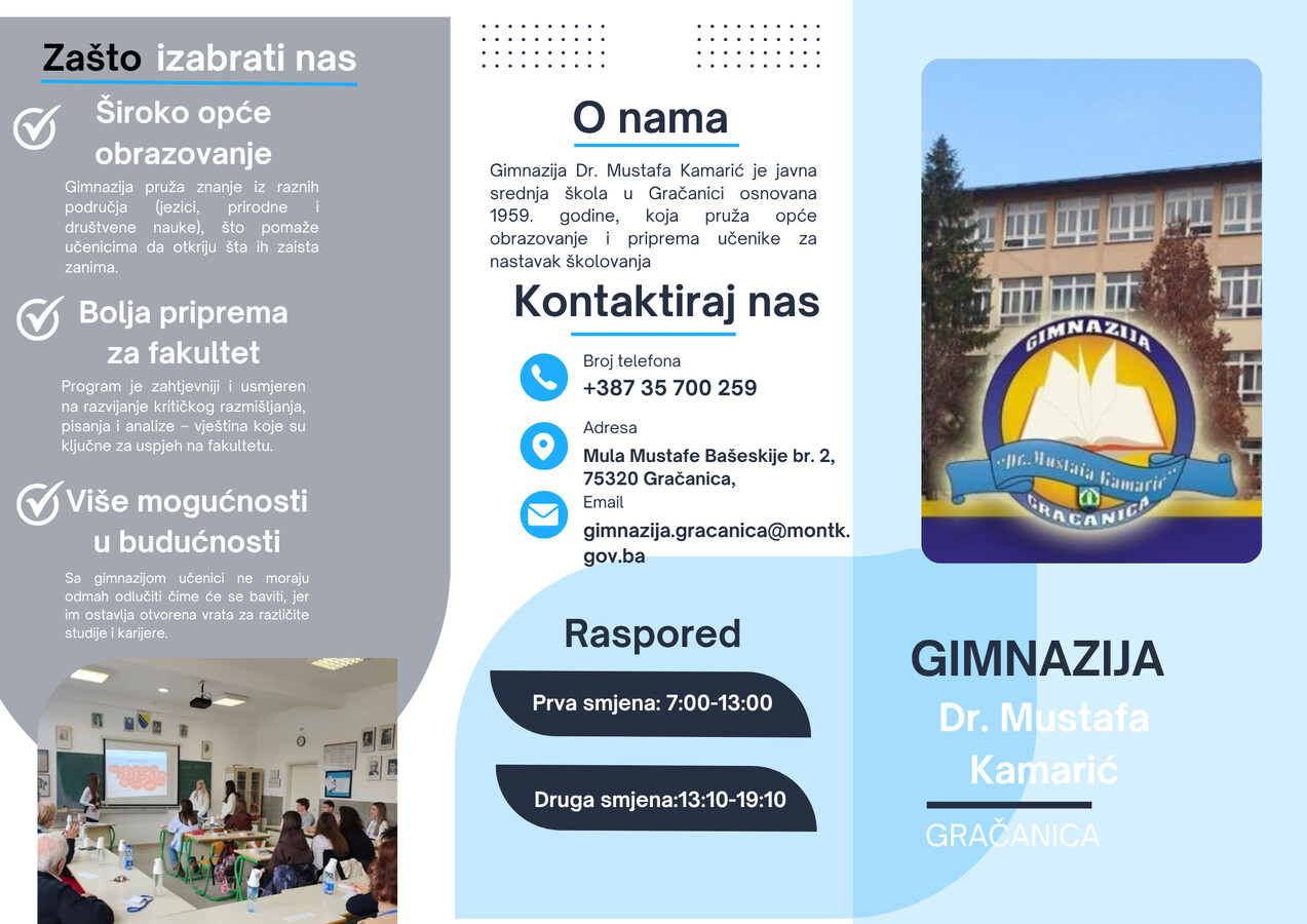 Vi morate naučiti misliti kako bi bili sposobni shvatiti značenje informacija koje primate i analizirate. Gimnazija je mjesto gdje vas oblikujemo kao pojedince koji će biti spremni da tokom radnog vijeka promijene više zanimanja te se nose sa različitim izazovima koje će savremeno društvo postaviti pred vas.
