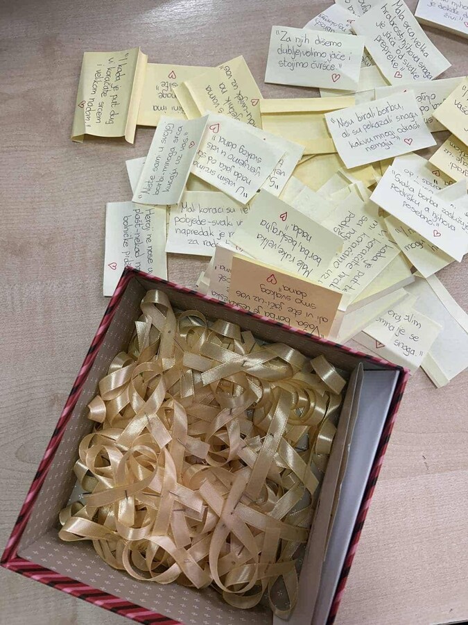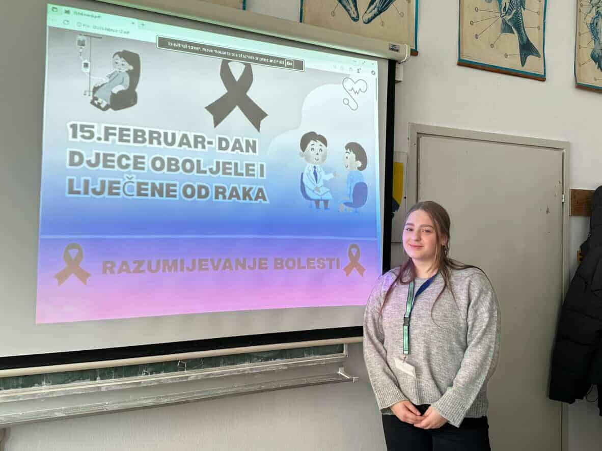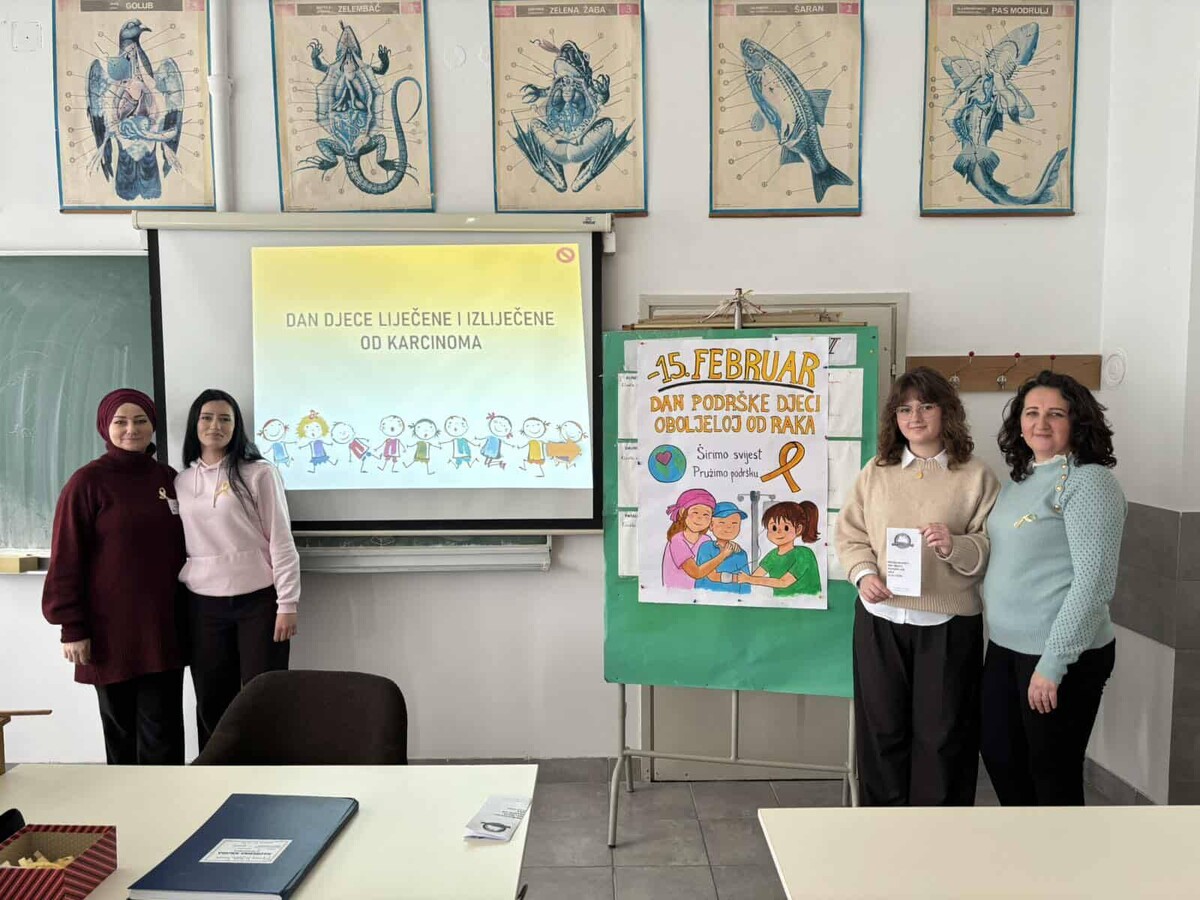 U našoj školi je obilježen Međunarodni dan djece oboljele i izliječene od karcinoma. Profesorice Jasminka Nurkanović i Samira Mejremić su zajedno sa učenicima od prvog do četvrtog razreda organizovale niz aktivnosti s ciljem podizanja svijesti o važnosti podrške djeci i porodicama koje prolaze kroz borbu sa ovom teškom bolešću.