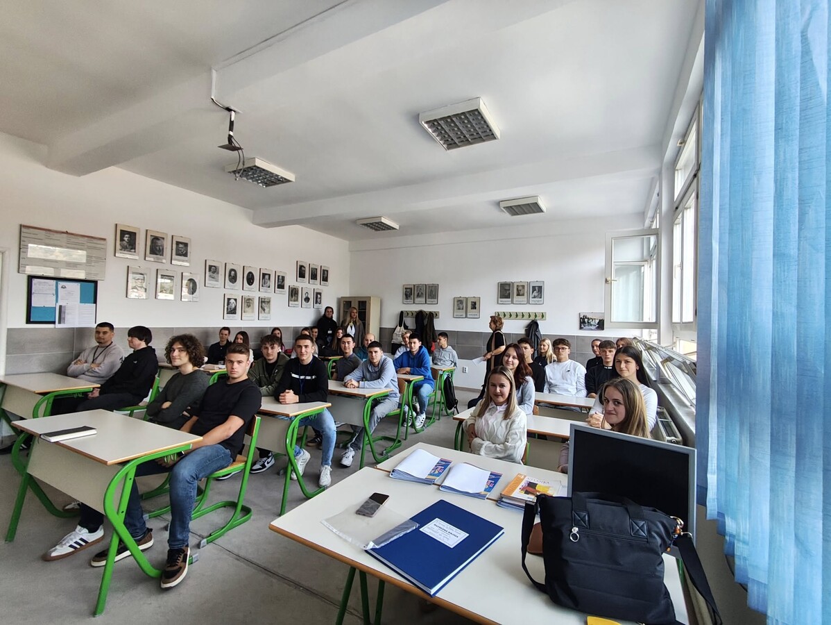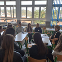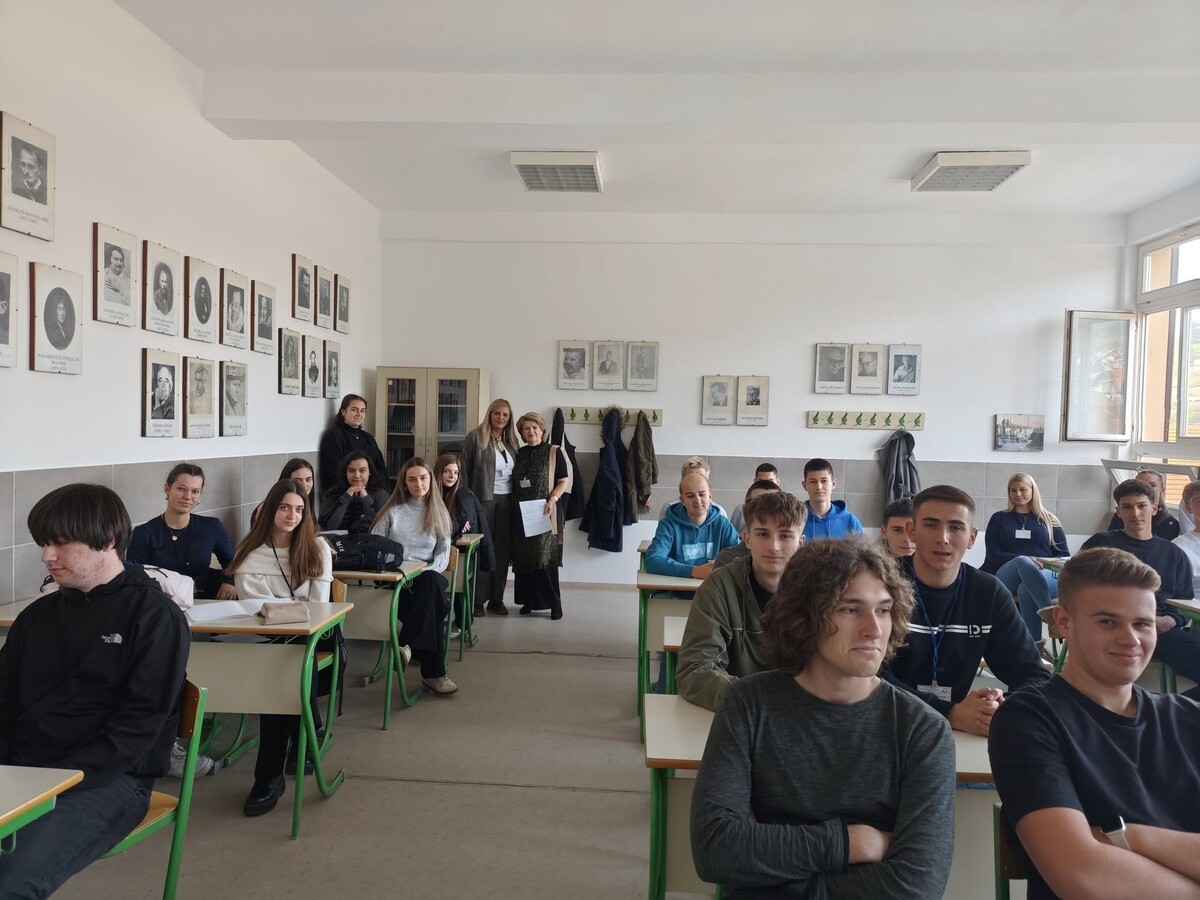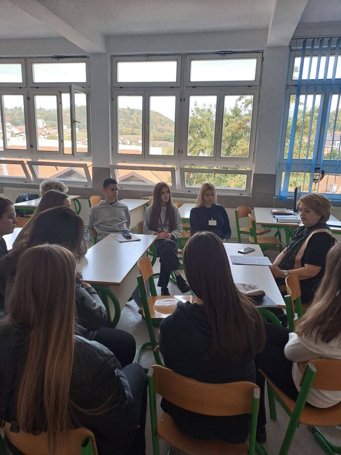 U okviru aktivnosti obilježavanja u utorak, 21.10.2025.godine sa naši učenici, a posebno članovi izborne grupe bosanski jezik i književnost u IV razredu i profesorica Džana Salihefendić su razgovarali o Dervišu Sušiću sa profesoricom Subhijom Karahmetović.