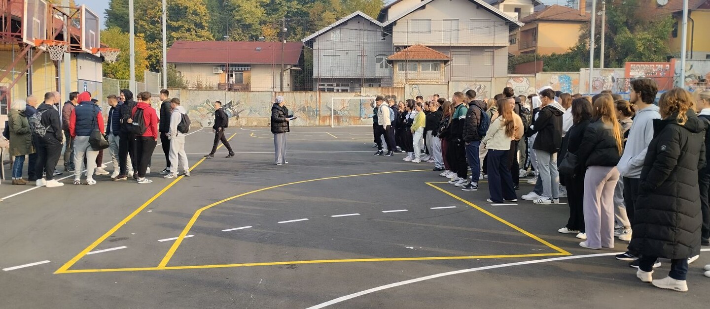 • Košarku su igrali muskarci sa po jednom učenicom u sastavu ekipa te je pobjeda pripala učenicima prve smjene.