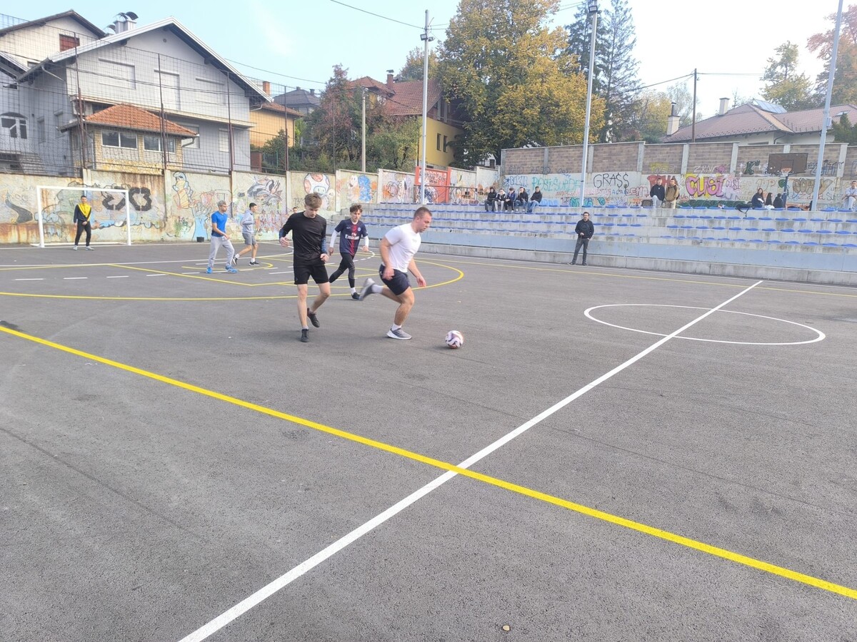 • Na rukometnom igralištu učenici su odigrali utakmicu iz malog nogometa gdje su pobijedili učenici prve smjene.