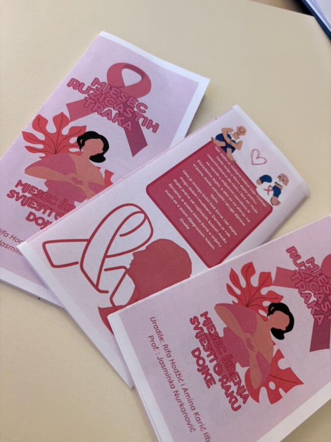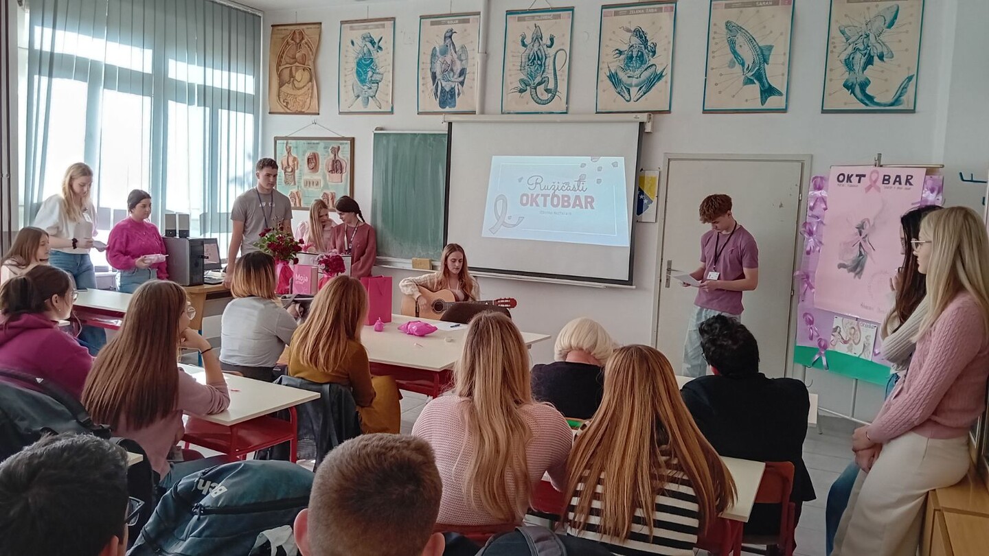 Danas je u našoj školi održana završna aktivnost povodom "Ružičastog oktobra". Oktobar je, inače, mjesec podrške oboljelima od karcinoma dojke, ali i ostalih oblika karcinoma.