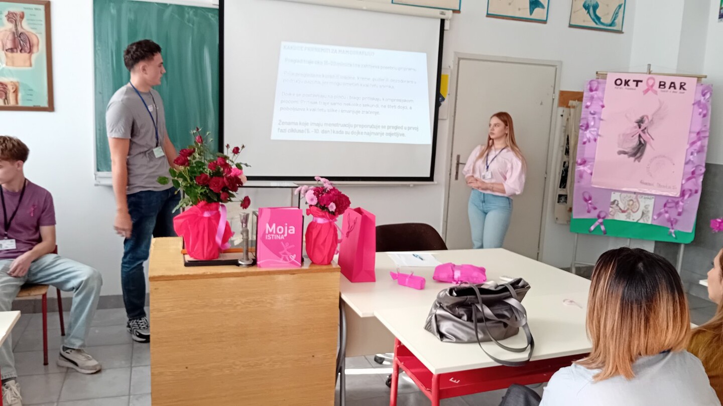 A danas su, zajedno s učenicima četvrtog (IV) razreda iz izborne grupe predmeta biologija-hemija, održale "ružičasti čas" na kome su učenici mogli mnogo toga naučiti o zdravlju i čuvanju organizma.