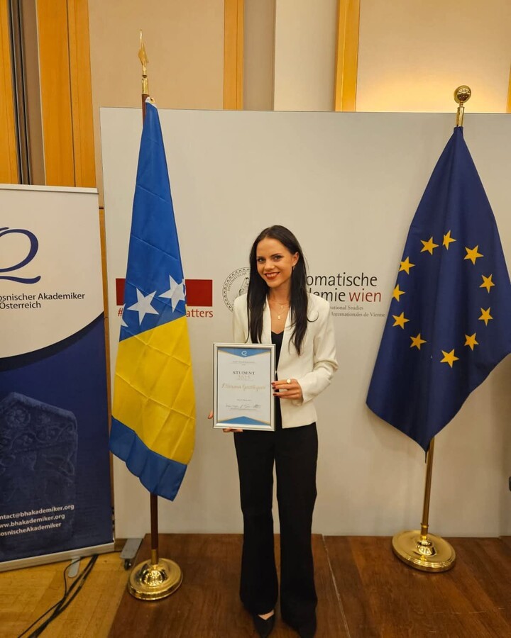Dženana Gazibegović, inače učenica generacije 47.generacije naše gimnazije u 2019/2020 školskoj godini, a sada studentica mašinstva na Tehničkom univerzitetu u Grazu, dobitnica je nagrade „Najbolji student 2025“ u oblasti prirodno-tehničkih nauka, za najbolje ocjene master studija u Austriji.