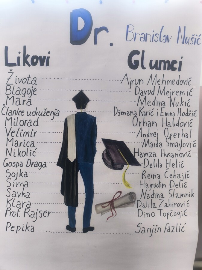 Članovi Dramske sekcije l, ll  i III razreda naše škole su se jučer predstavili našim profesorima, roditeljima i ostalim učenicima sa fenomenalno odigranom predstavom  pod nazivom "Dr" pisca Branislava Nušića.