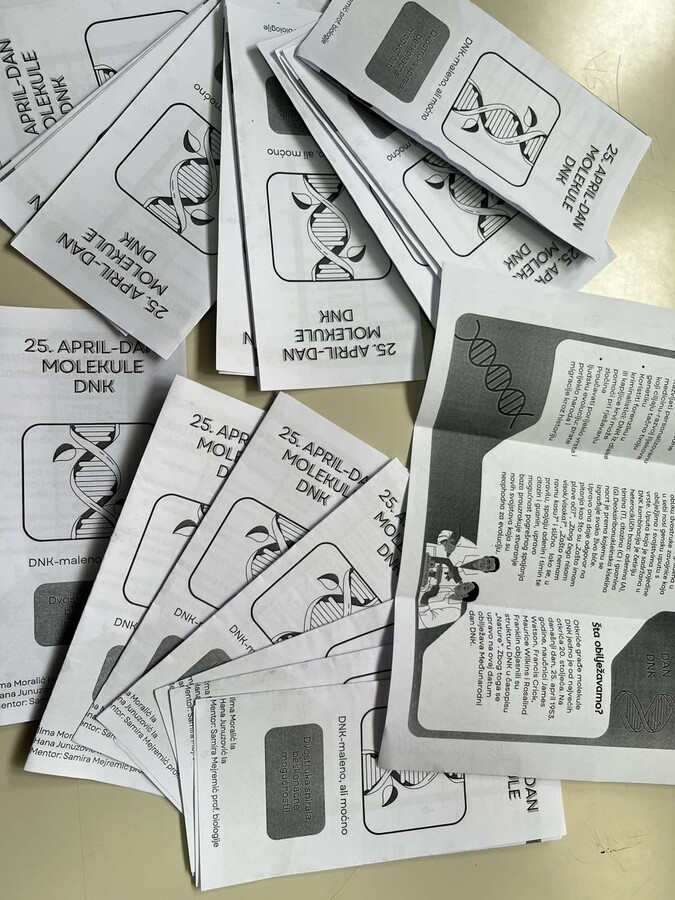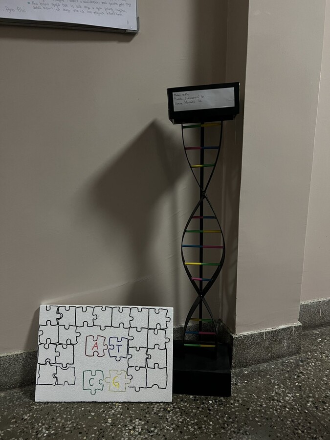 Učenice prvog razreda, Hana i Ilma, izradile su brošuru, plakat te prekrasan model molekule DNA koji je izložen u holu škole. Također su učenicima pripremile "kutiju komplementarnih parova", po uzoru na komplementarne heterociklične baze unutar molekule DNA.