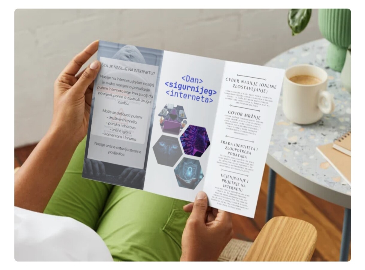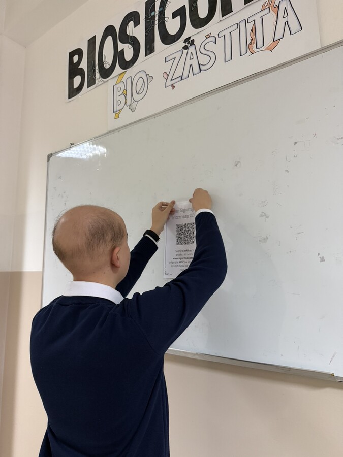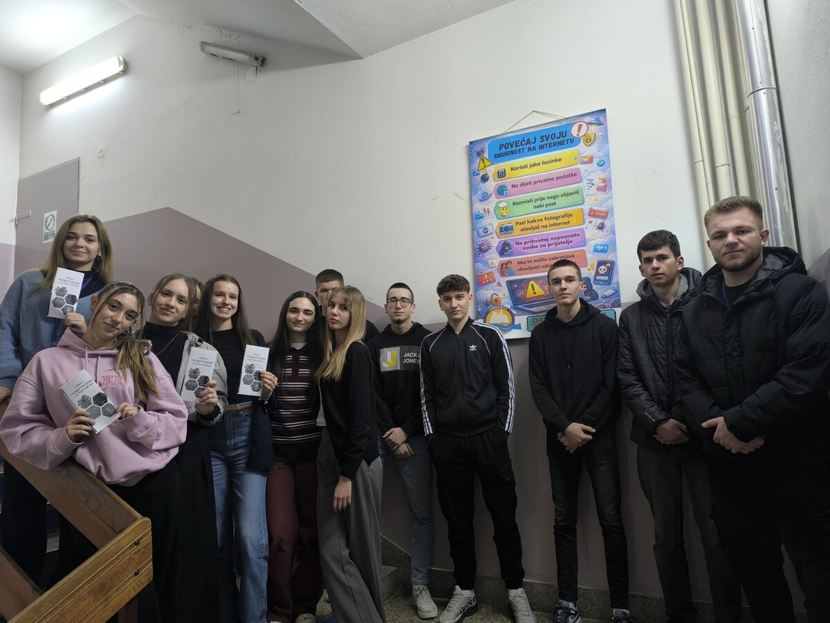 Zajedno sa učenicima su osmislili, kreirali i printali plakat i trostrane letke. Postavili su plakat na vidno mjesto u hodniku kao preventivnu mjeru sprečavanja internet nasilja.